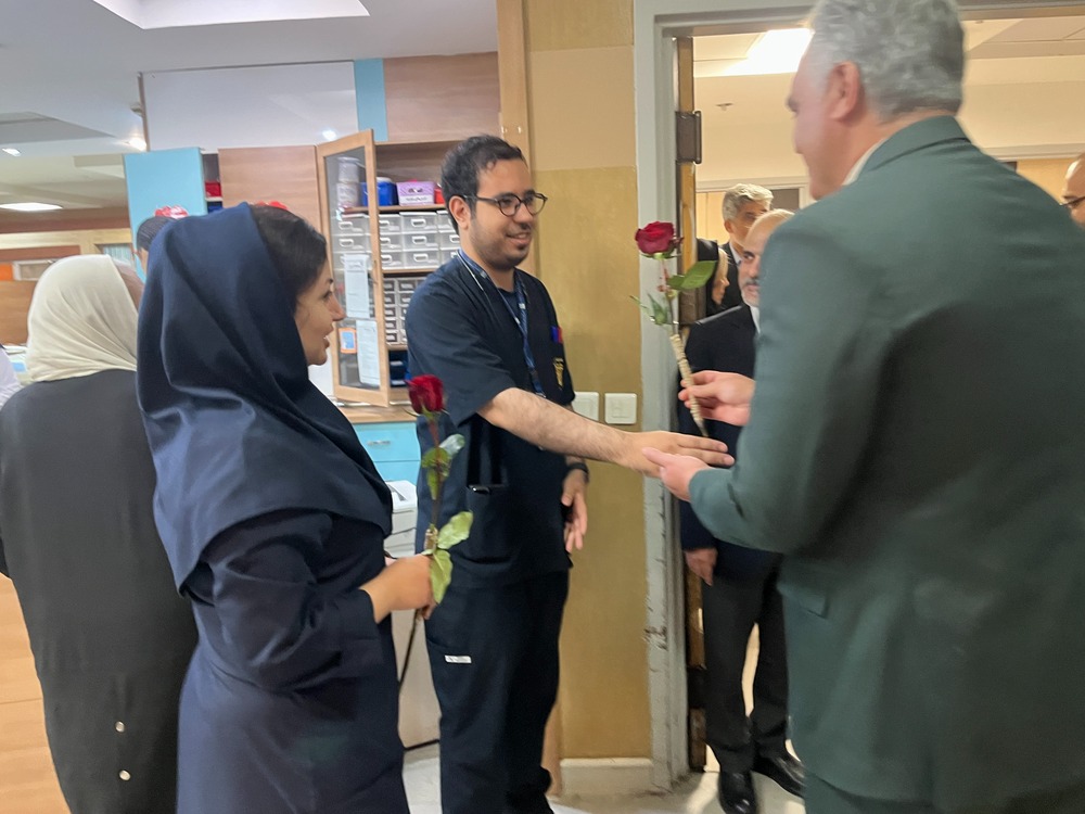 بازدید هیئت نظام پرستاری و مدیر پرستاری دانشگاه از بخش‌های بیمارستان به مناسبت روز پرستار