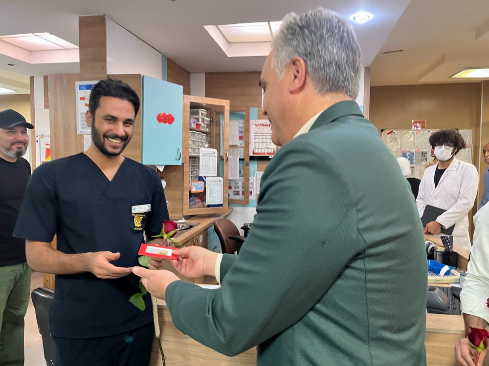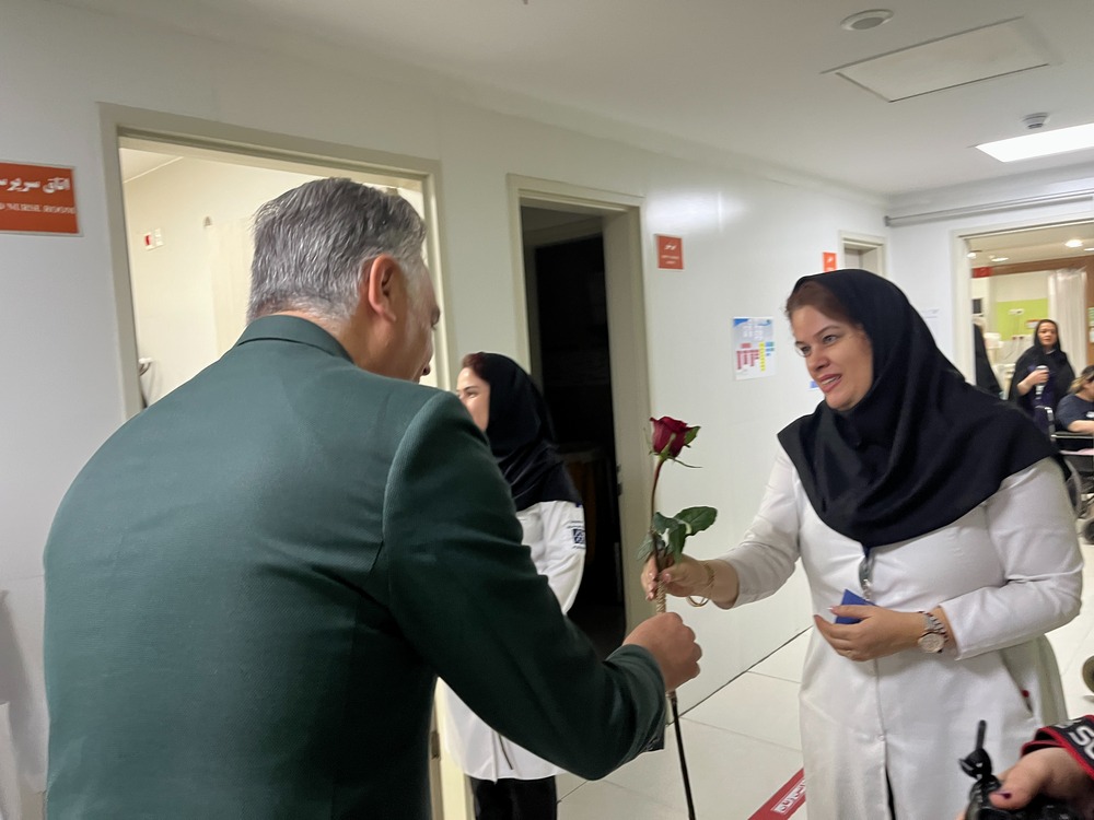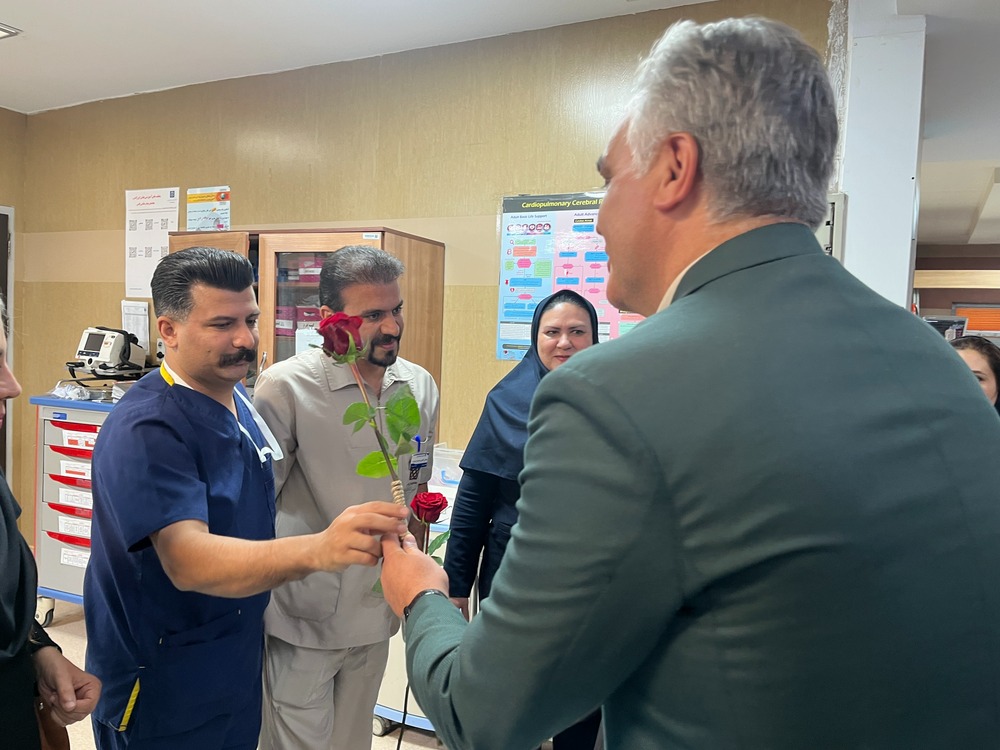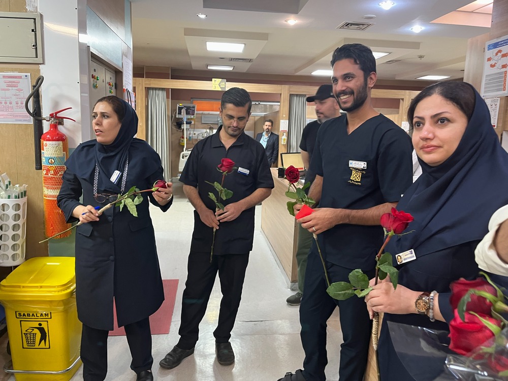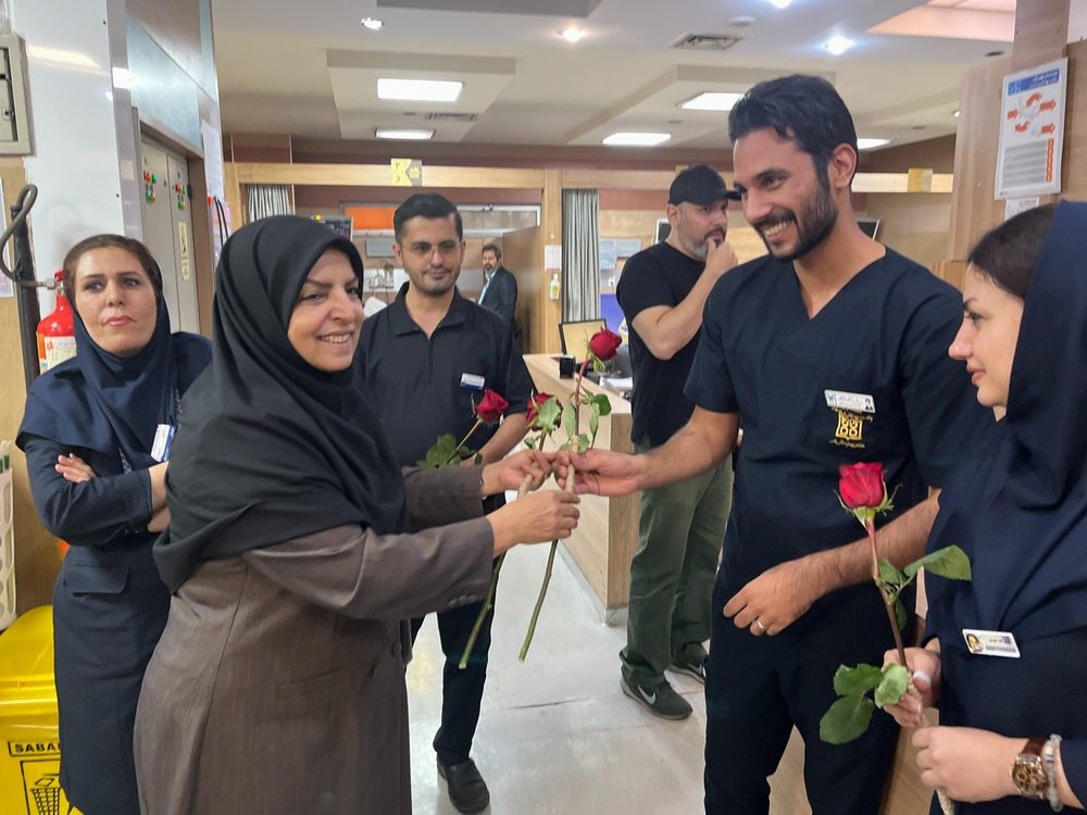 به مناسبت روز پرستار، اعضای نظام پرستاری به همراه مدیر پرستاری دانشگاه با حضور در بخش‌های مختلف بیمارستان، ضمن تبریک این روز و اهدای گل، از تلاش‌ها و خدمات ارزشمند پرستاران قدردانی کردند.